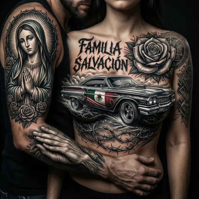 Flash-style Chicano tattoos celebrate classic imagery and artistic roots. These designs reflect legacy, creativity, and bold expression. Strong outlines and iconic symbols make them timeless and culturally rich.