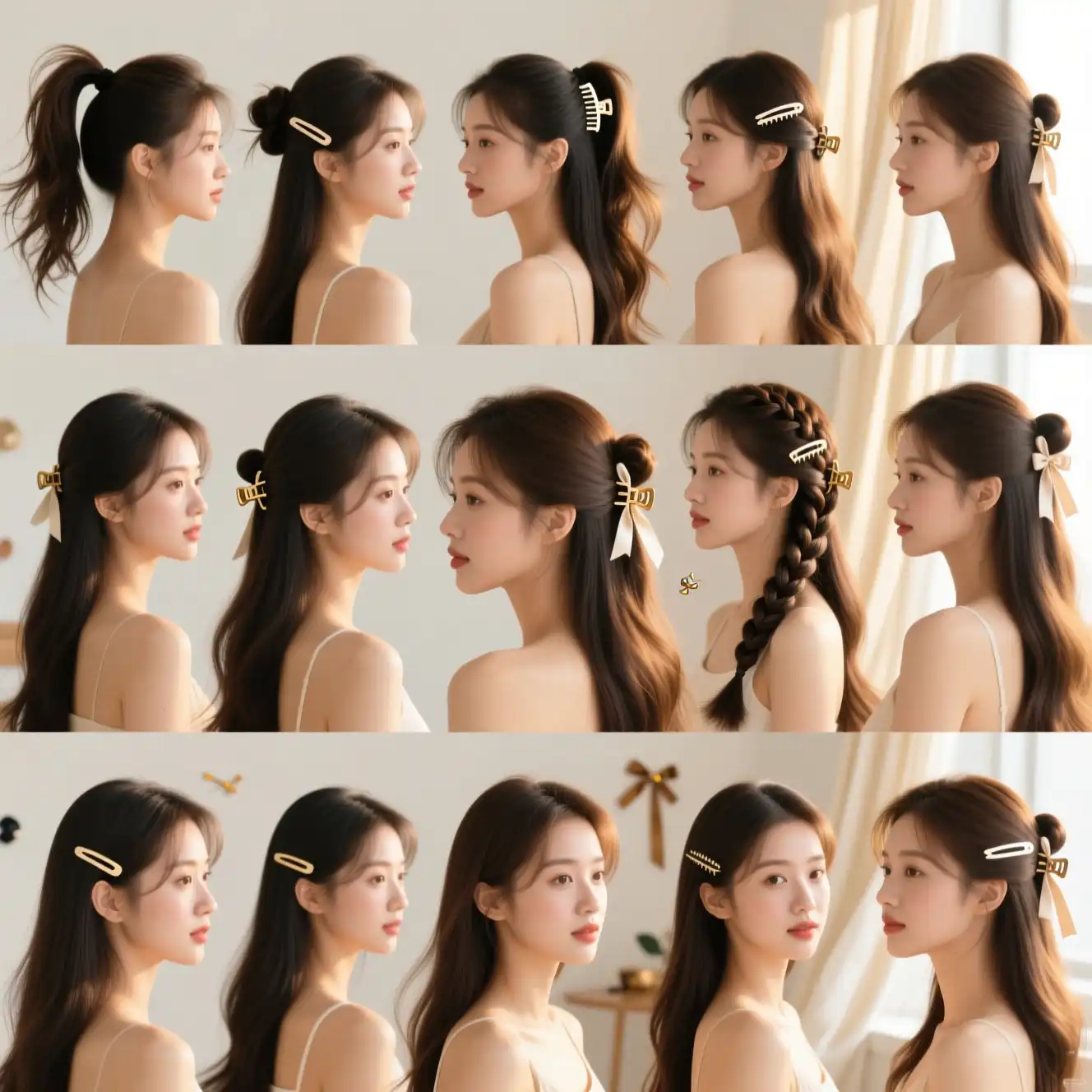 A half pony secured with a claw clip is a fresh alternative to hair ties. The clip adds volume and prevents tension while keeping hair off the face. This style works well for long hair and feels comfortable all day. It’s perfect for casual wear and creates a youthful, laid-back look with minimal effort.