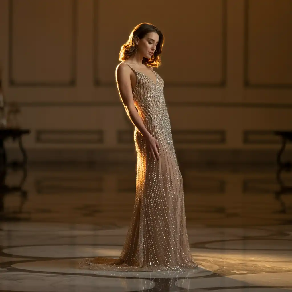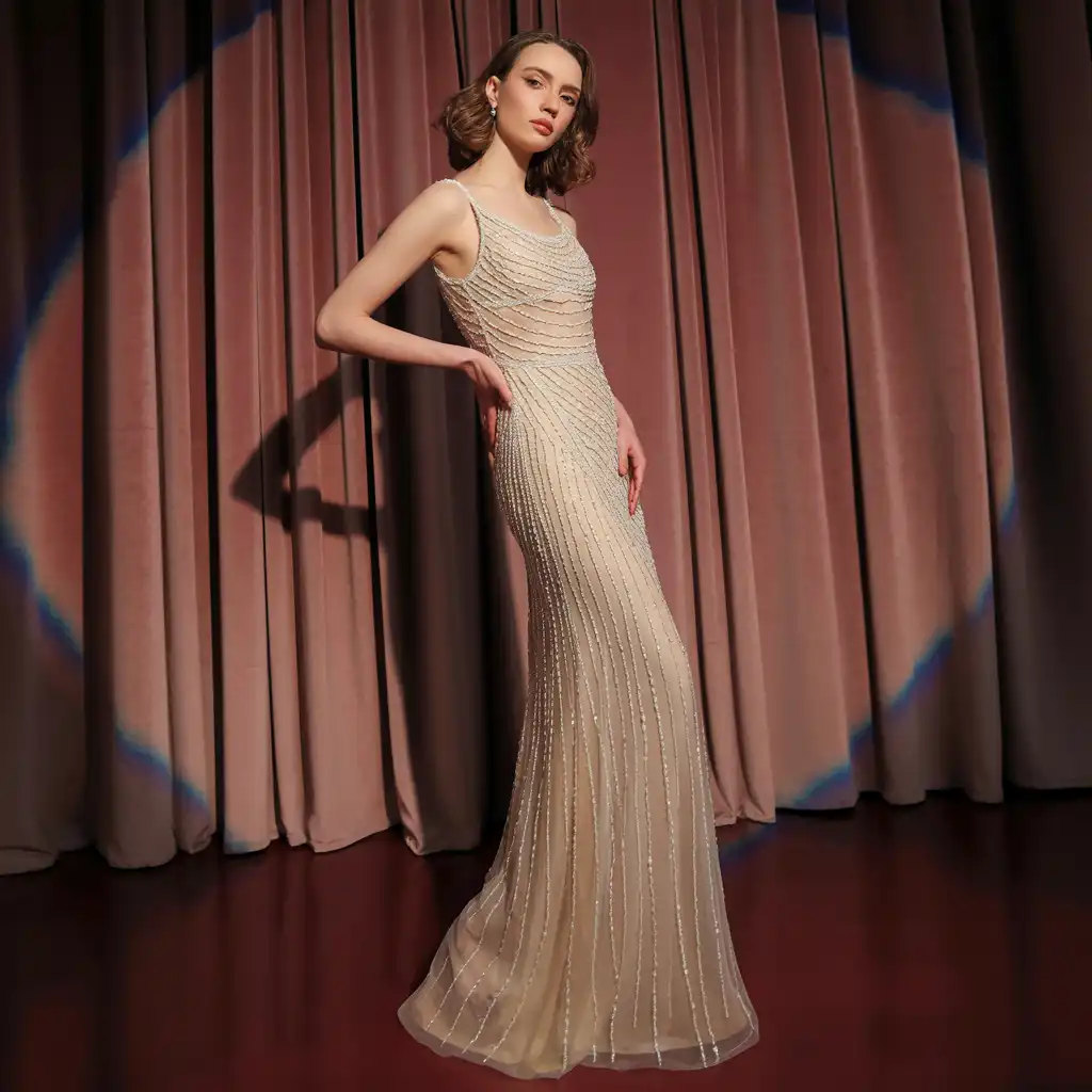 A crystal-embellished gown radiates luxury and sophistication. The delicate sparkle catches the light beautifully without appearing overwhelming. Opt for soft neutral bases or deep jewel tones to enhance elegance. Keep accessories minimal to allow the detailing to shine. This glamorous look is ideal for black-tie events, weddings, and formal evening parties where refined sparkle is desired.