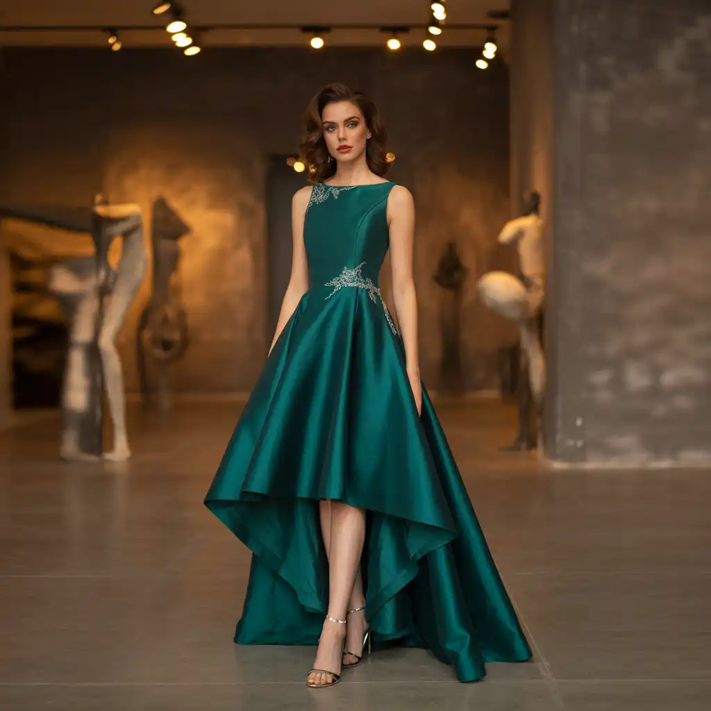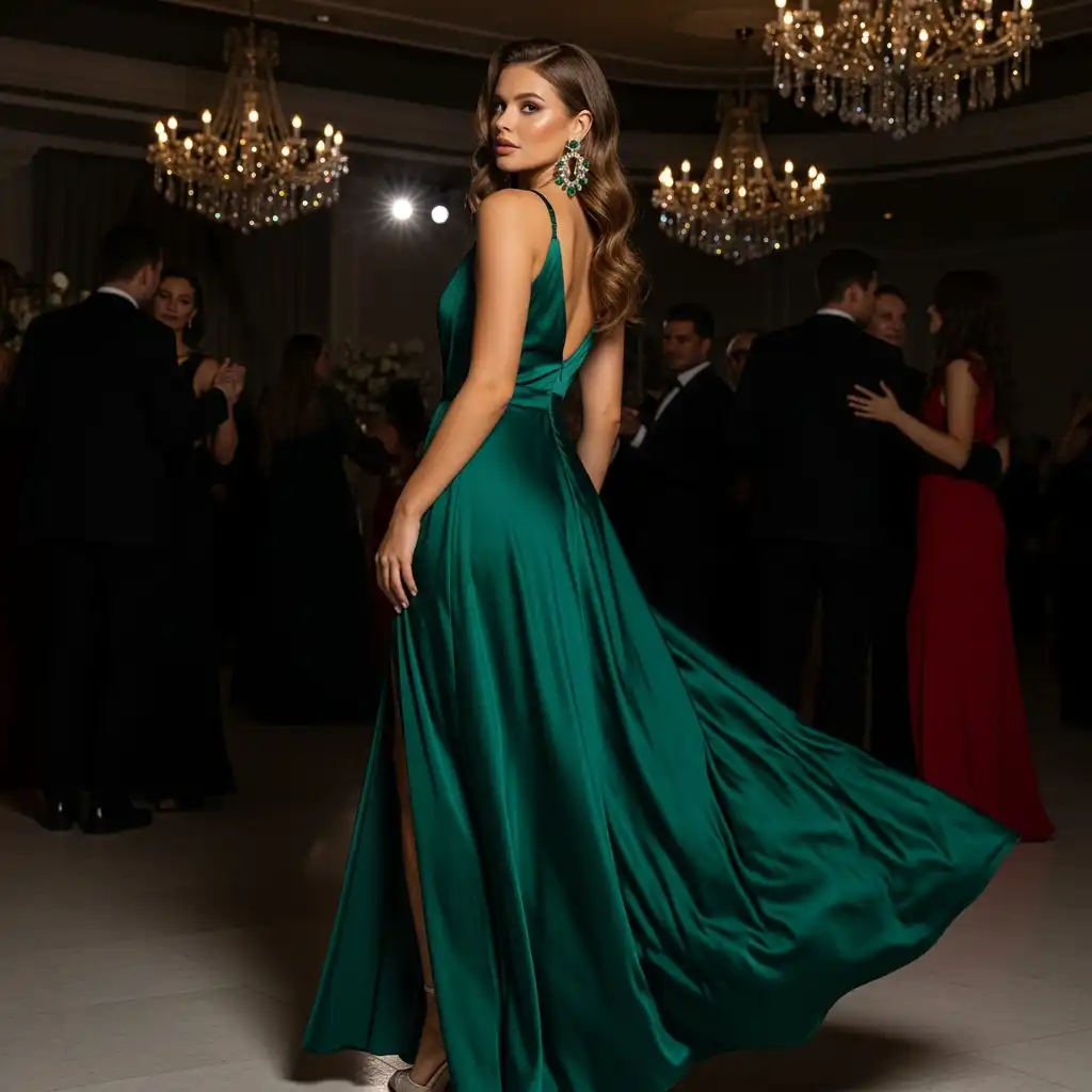 A dramatic satin ball gown creates a breathtaking entrance at any formal event. The voluminous skirt adds grandeur, while the smooth satin fabric enhances luxury. Choose bold shades like royal blue, deep red, or classic black. Keep accessories refined to maintain balance. This statement look is perfect for black-tie occasions and celebratory evenings where elegance is essential.