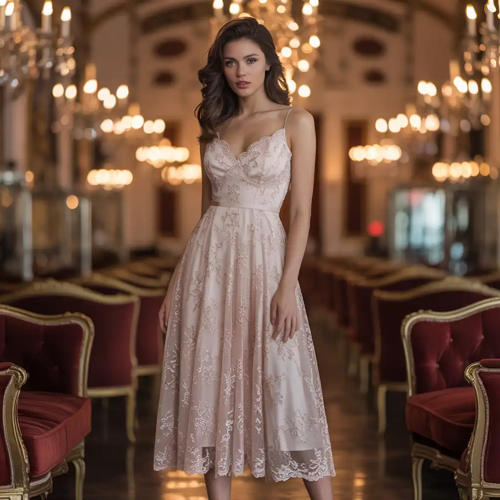 A lace midi dress creates a refined and feminine appearance. The intricate lace details add texture without overwhelming the look. Soft colors like blush, cream, or navy maintain elegance. Pair with classic pumps and understated jewelry. This outfit feels graceful and ideal for formal celebrations or engagement events.