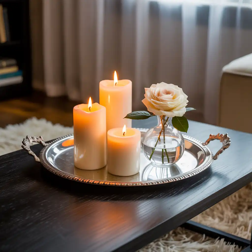 A well-styled coffee table elevates the entire room. Arrange a stack of books, a scented candle, and a small vase for balance. Keep the setup simple to avoid clutter while maintaining sophistication.