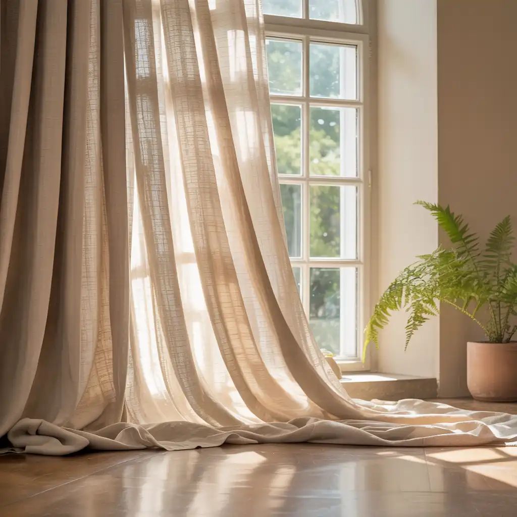 10. Neutral Curtains with Natural Flow