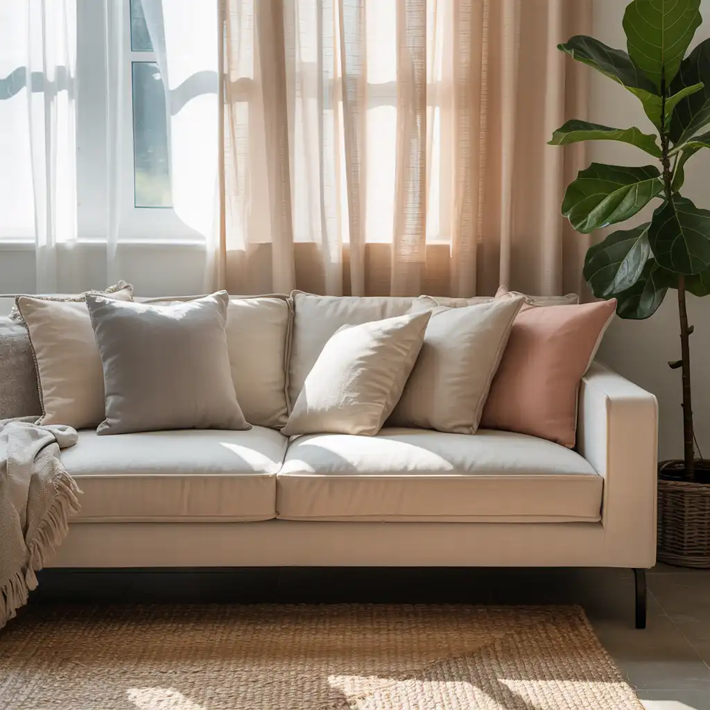 1. Neutral Sofa with Layered Textures