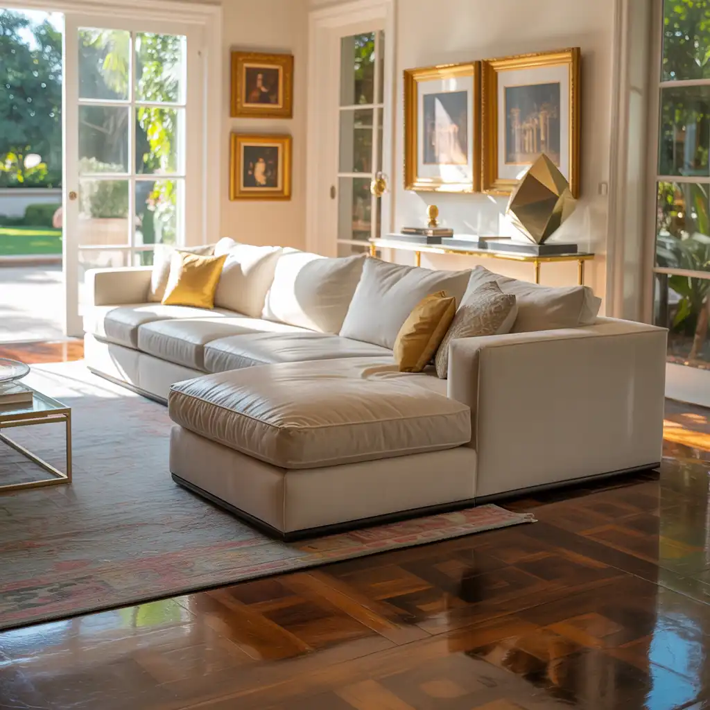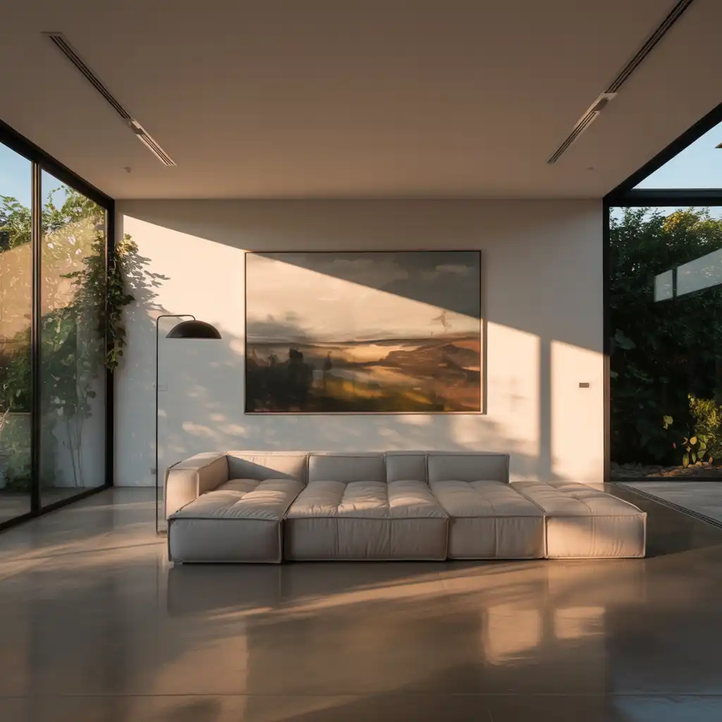 Lighting dramatically influences mood. Add a sleek floor lamp or table lamps to create soft evening ambiance. Warm lighting enhances comfort and gives the space a welcoming glow.