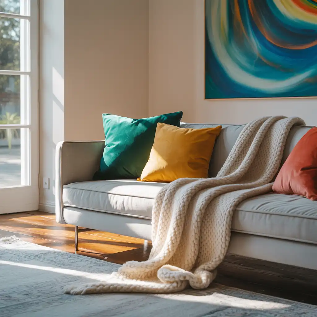 Layering textured throw blankets over a sofa or chair adds warmth and visual depth to a living room. Materials such as knit, fleece, or cotton provide both comfort and style. Soft neutral colors blend beautifully with most interior themes, while subtle patterns can add interest. Throw blankets also make the seating area feel more inviting. This decor idea is simple but highly effective in creating a cozy and relaxed atmosphere.