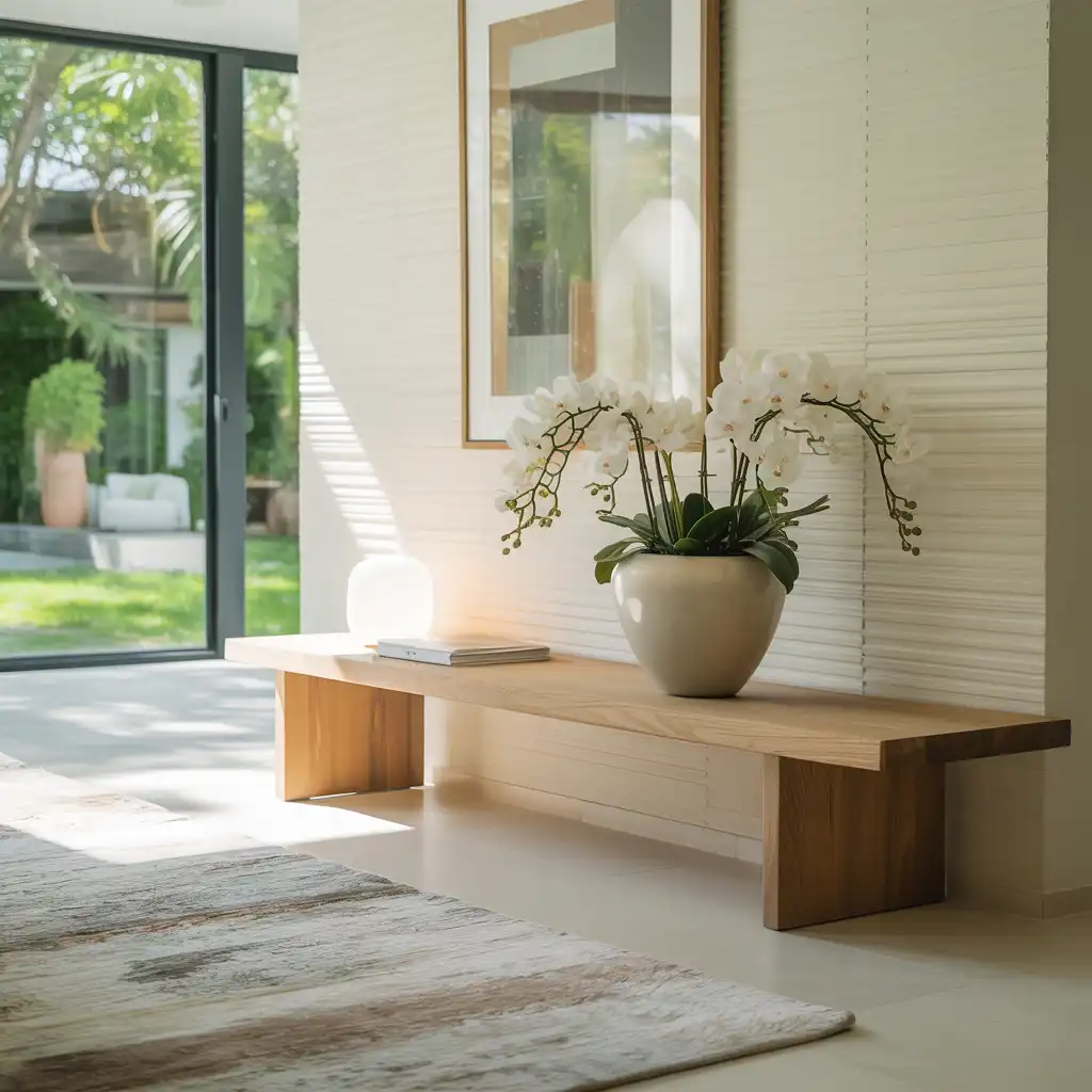 A console table placed against a wall or behind a sofa can add both style and functionality to a living room. Decorating it with a vase, framed artwork, candles, or small sculptures creates a balanced arrangement. Keeping the styling minimal prevents the area from looking crowded. Console tables also offer a great space to display decorative accents that reflect personal style while maintaining a clean and elegant living room design.