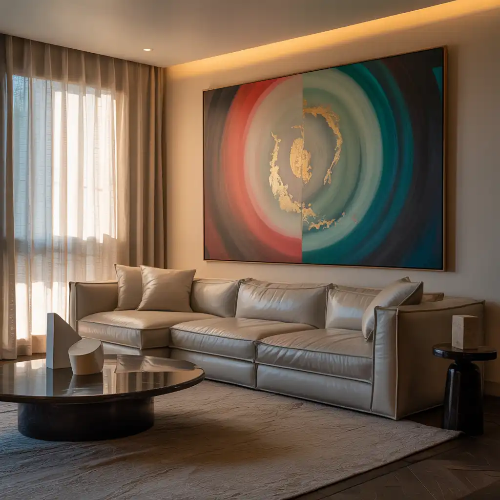 Wall art is one of the easiest ways to transform a living room without changing the furniture. Large abstract paintings, framed photography, or creative prints can instantly add personality to the space. Choosing artwork that matches the color palette of the room helps maintain harmony. A well-placed art piece above the sofa or console table becomes the focal point of the room. This simple idea brings creativity and elegance while making the space feel more expressive and visually appealing.
