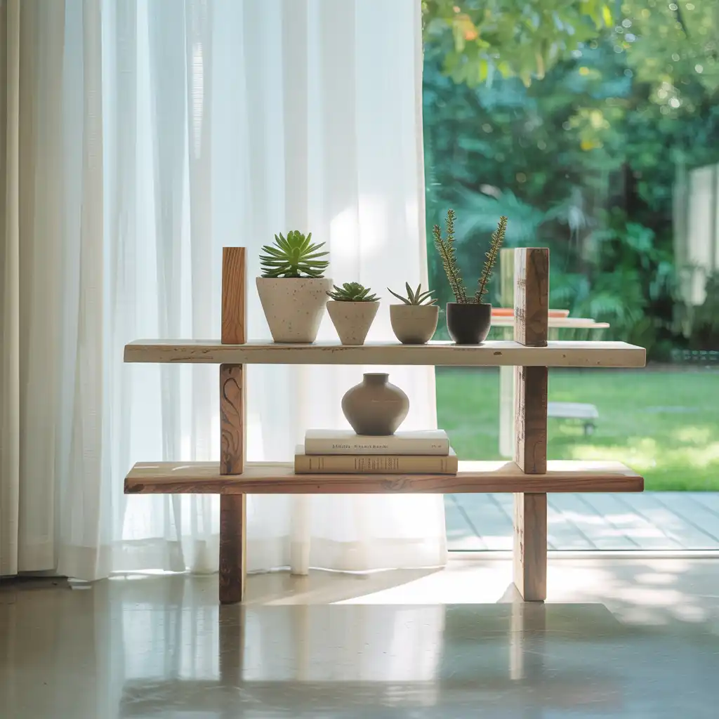 Handmade wooden floating shelves offer both functionality and rustic beauty. Crafted from reclaimed or natural wood, they add warmth and character to any wall. Style them with small plants, candles, or framed photos for a personalized display. Floating shelves maximize vertical space while keeping the room open and airy. This DIY project blends practicality with handcrafted elegance.