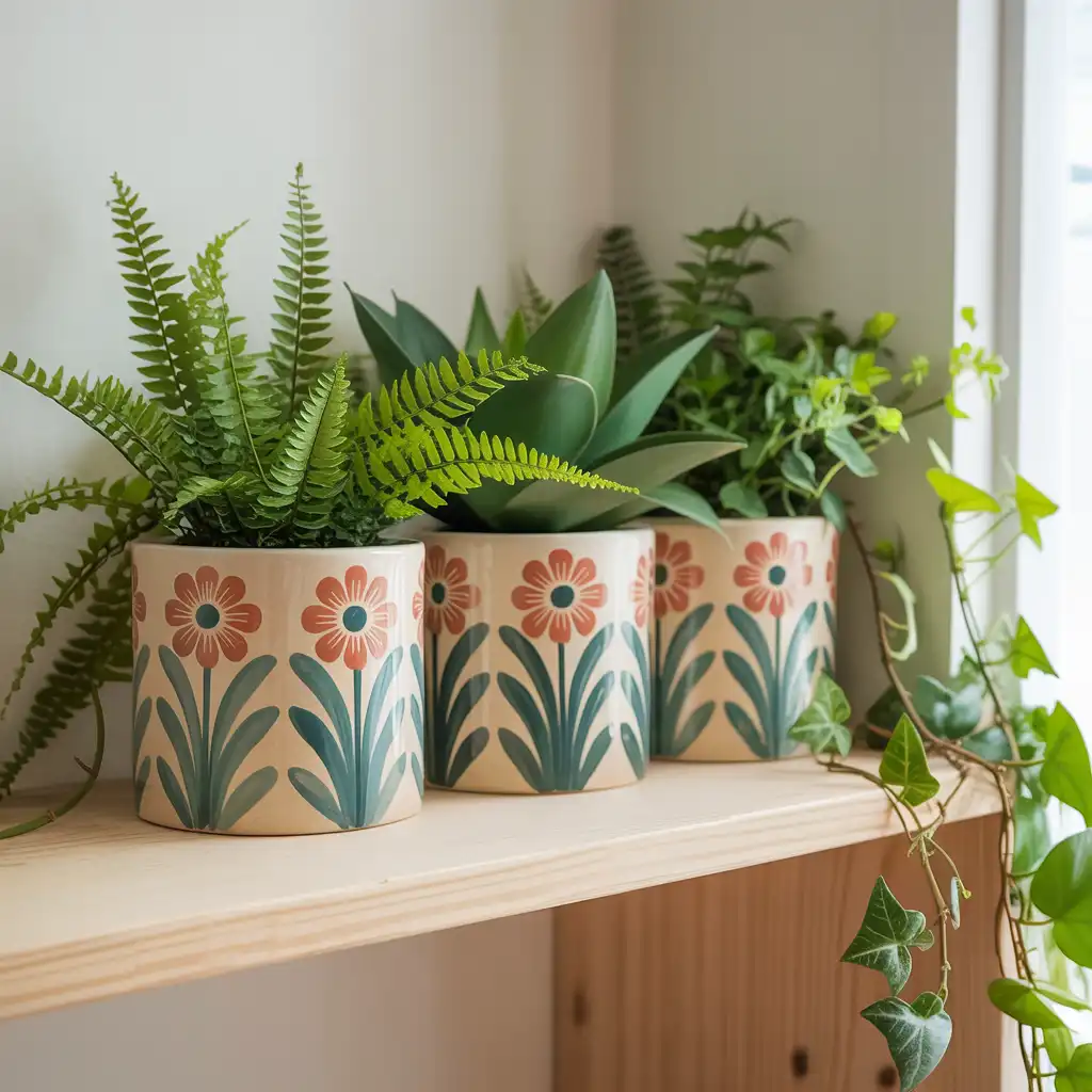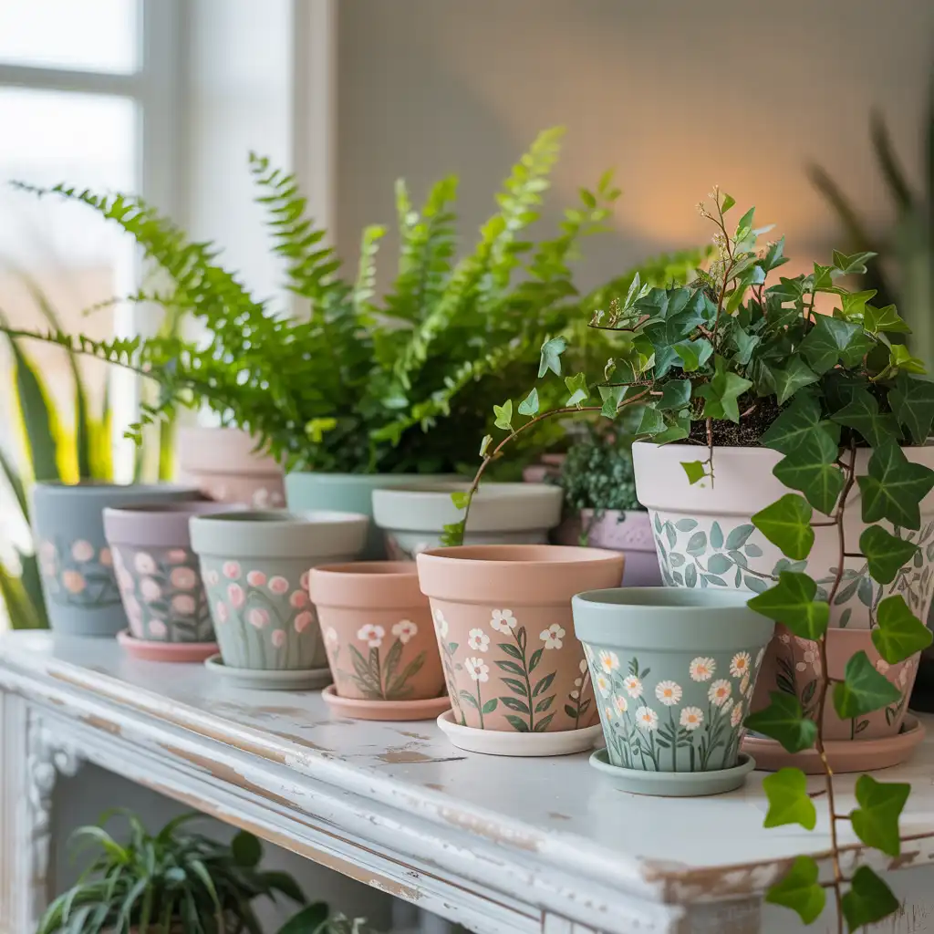 Customizing plant pots with paint or textured finishes adds charm to indoor greenery. Use neutral tones or subtle patterns to complement your decor. Handmade pots elevate simple plants into decorative accents. Group them together for a cohesive look or place them individually in different rooms. This creative idea blends nature and artistry beautifully.