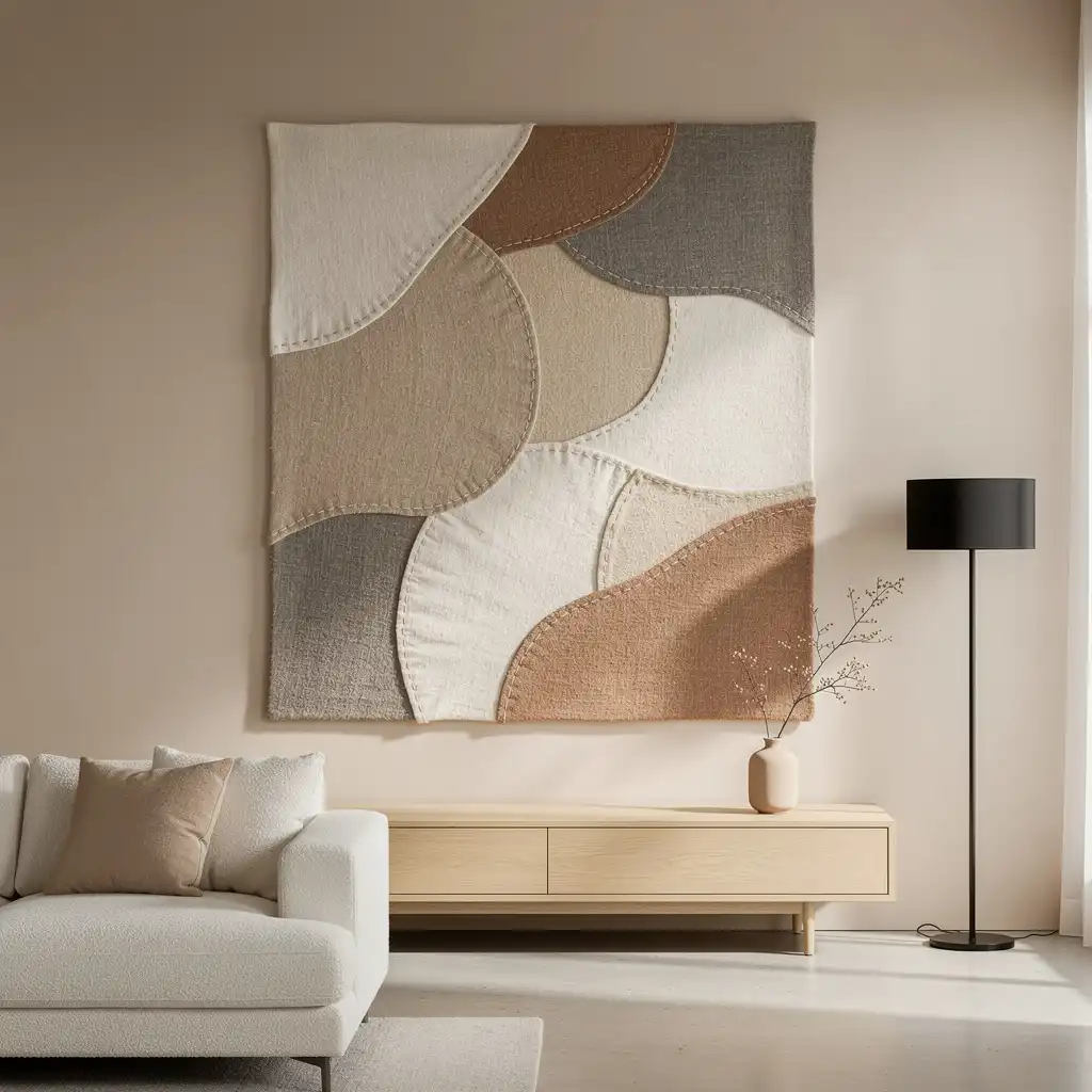 Fabric wall art crafted from layered textiles or embroidery adds softness and depth to interiors. Choose natural fabrics and subtle color combinations for a refined look. Hang the artwork in a bedroom or living area to create warmth and visual interest. Handmade textile pieces make spaces feel inviting and uniquely styled.