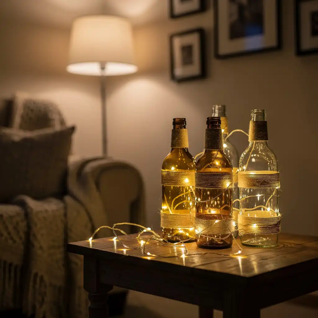 Transforming recycled glass bottles into decorative pieces is both sustainable and stylish. Wrap them with twine, paint them in soft shades, or insert fairy lights for a magical glow. Display them on shelves or side tables to create a warm ambiance. This eco-friendly idea adds creative charm while giving everyday items a beautiful second life in your home.