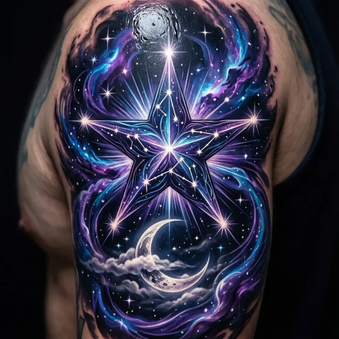 A back star tattoo allows for a bold celestial concept. It represents destiny, ambition, and cosmic connection. The large canvas enhances visual storytelling, making it ideal for men who see their tattoo as a lifelong symbol of purpose and direction.