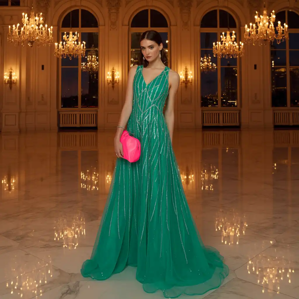A neon clutch provides contrast to elegant evening wear. It keeps your look bold yet sophisticated, perfect for parties or events.