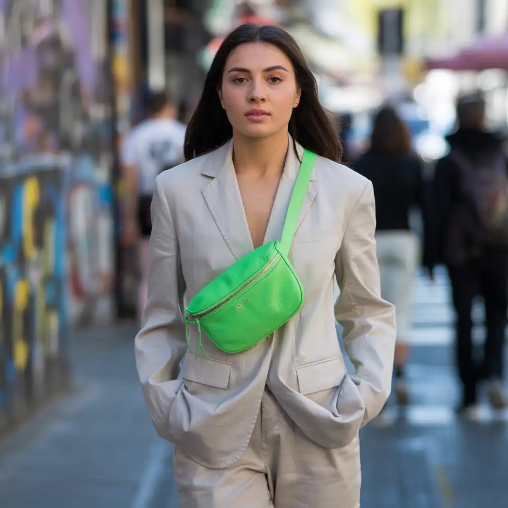 Waist bags in neon shades create bold streetwear appeal while remaining practical.