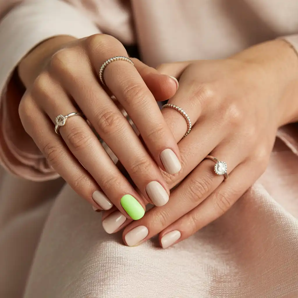 A single neon nail adds playful detail without overwhelming your look.