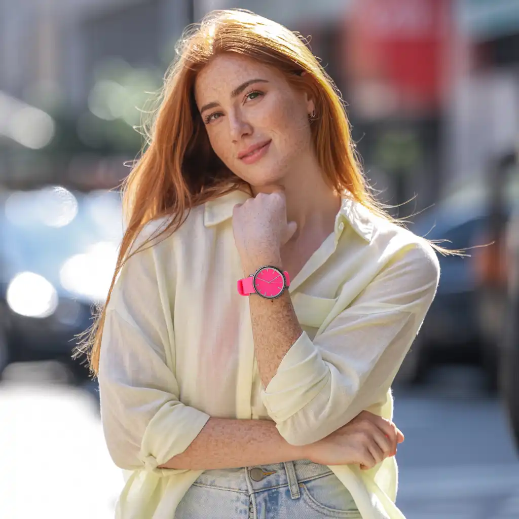 A neon watch strap adds color to everyday looks. It feels sporty, modern, and stylish while remaining functional.