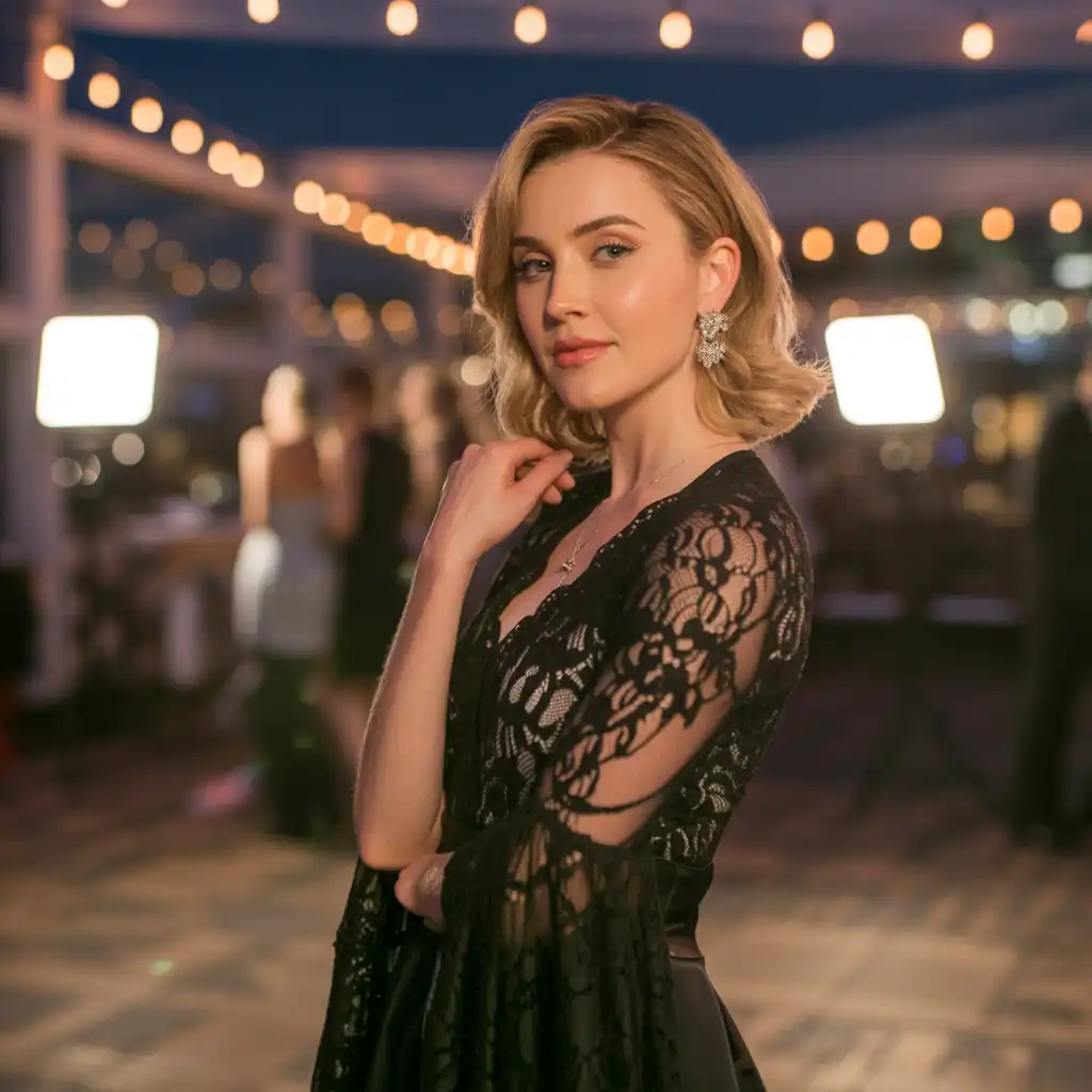 A lace dress adds romantic elegance to any night party outfit. The delicate lace texture creates a refined look while maintaining femininity. Black lace dresses are especially popular for evening events because they feel classic and stylish. Pair the dress with simple heels and subtle jewelry to keep the design balanced. This outfit is perfect for cocktail parties, formal night gatherings, or elegant celebrations.