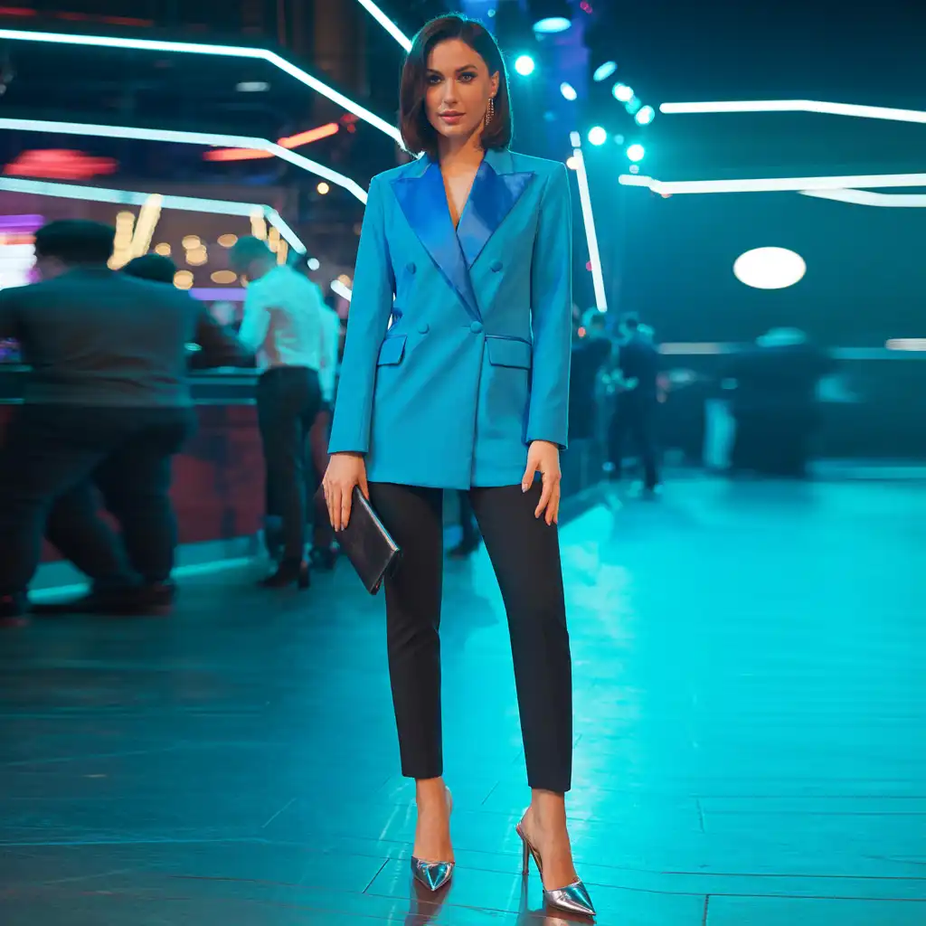 A statement blazer can transform a simple outfit into a fashionable night party look. Wearing a bold blazer over a fitted top and stylish trousers creates a powerful and trendy appearance. Bright colors or embellished blazers work especially well for evening events. Pair with heels and a small clutch to complete the look. This outfit blends sophistication and fashion-forward style perfectly.