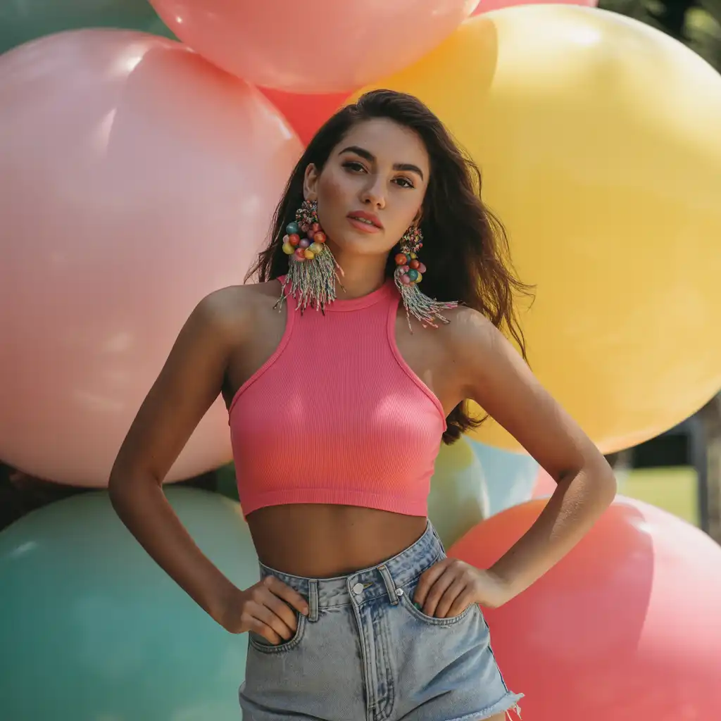 Crop tops paired with colorful earrings create a playful and energetic outfit. The bright accessories bring life to simple clothing. This look is ideal for festivals, casual outings, and fun photoshoots. Match the earrings with your bag or shoes for a coordinated style.