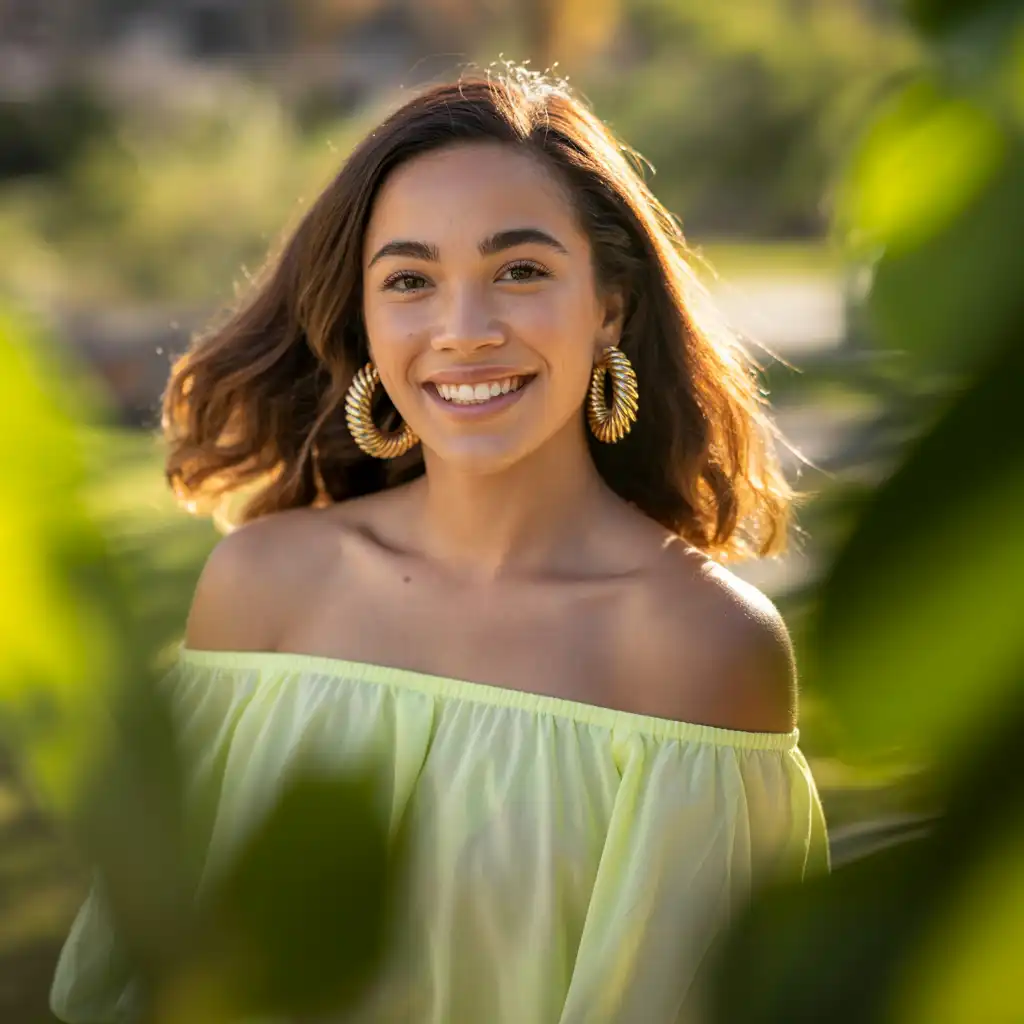 Off-shoulder tops highlight the neckline, making them perfect for statement hoops. This combination feels bold and feminine. It suits summer days, vacations, and brunch plans. Pair with high-waist jeans and light makeup for a balanced look.