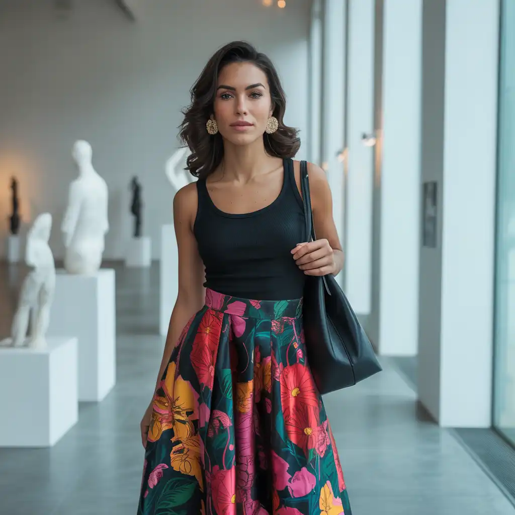 Printed skirts look stylish with bold stud earrings. The balance between patterns and accessories creates harmony. This outfit works well for casual outings and shopping days. Pair with simple tops to keep the look clean.