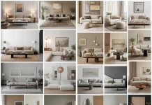 This relaxed combination feels modern and comfortable. Neutral tones enhance sophistication.
