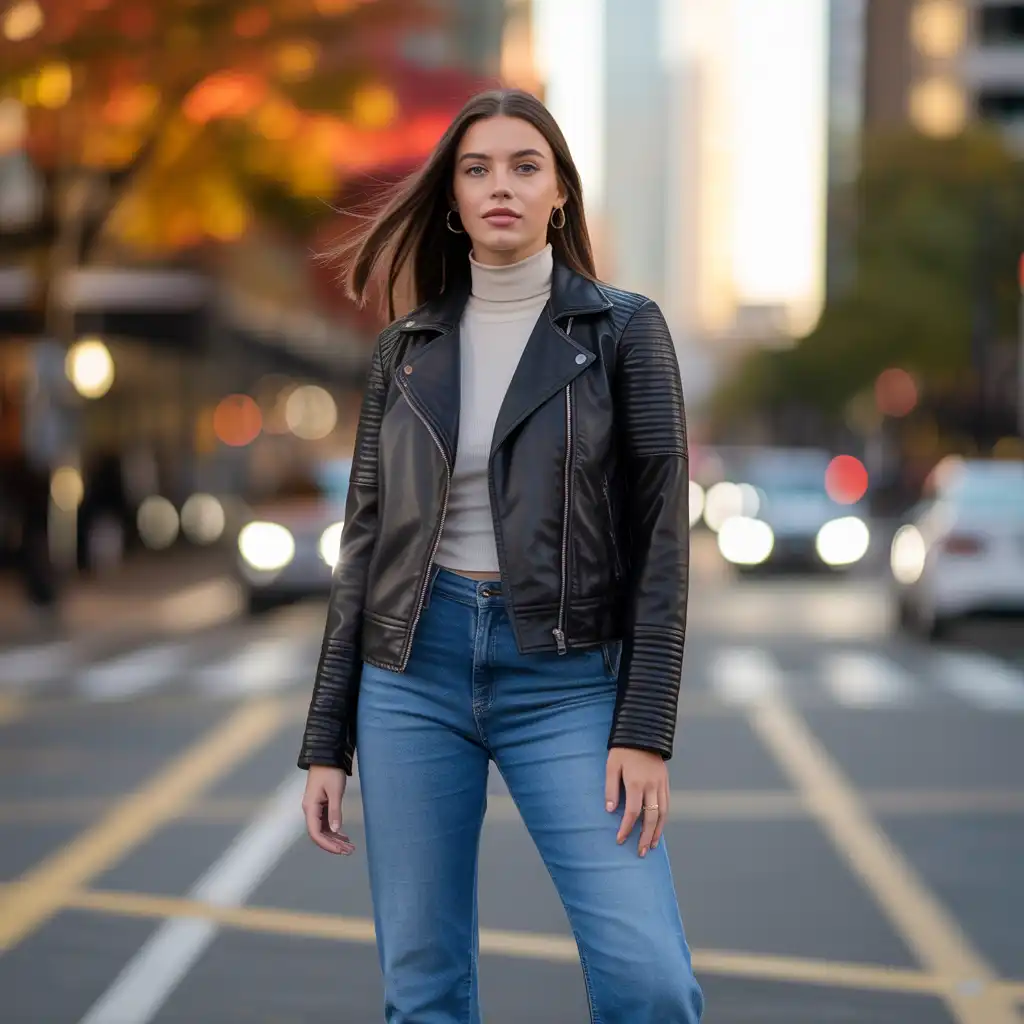 A leather jacket instantly elevates straight jeans. This combination creates a confident and edgy fall look. Layer with a simple tee or knit top. Add ankle boots for seasonal charm. It’s bold, practical, and timeless.