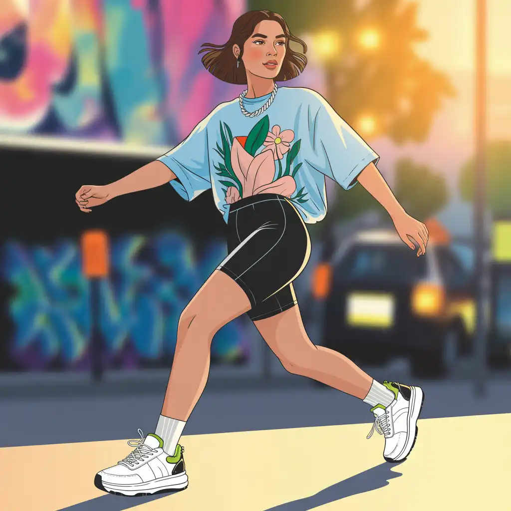 Oversized graphic tees with biker shorts define cool summer streetwear. The relaxed fit keeps things breathable while looking bold. Add chunky sneakers and sunglasses for an edgy touch. This outfit is practical for hot days yet stylish enough to turn heads.
