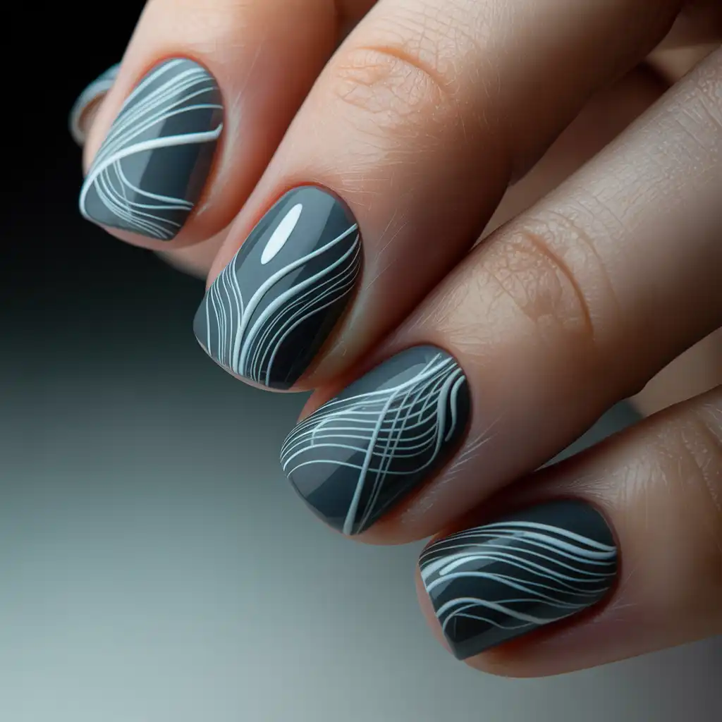 Abstract white line designs add artistic flair to simple nails. The soft lines create movement and creativity. This style feels modern and expressive without being messy. It’s perfect for fashion lovers who enjoy minimal art with personality.